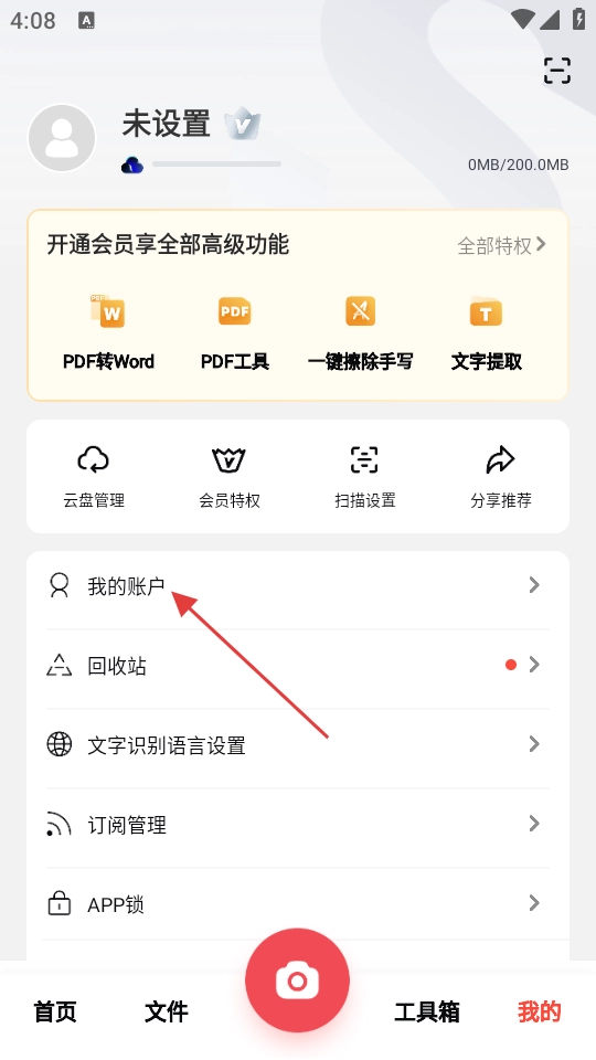 2、在【我的】页面,找到并点击【我的账户】选项。