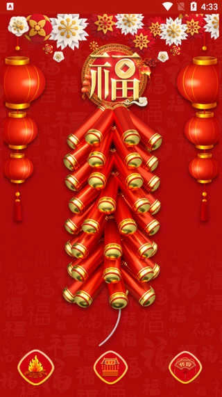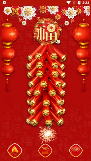 2、初次使用也无需担心,左下角那个熊熊燃烧的火焰图标就是点火开关,点击它就能点燃鞭炮,再次点击还能立刻停止爆炸音效和动画。