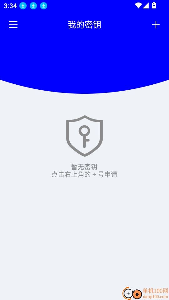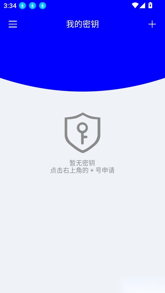 3、接着在“我的密钥”界面的左上角,点击“三条横线”样式的图标按钮,以此推进下一步操作。