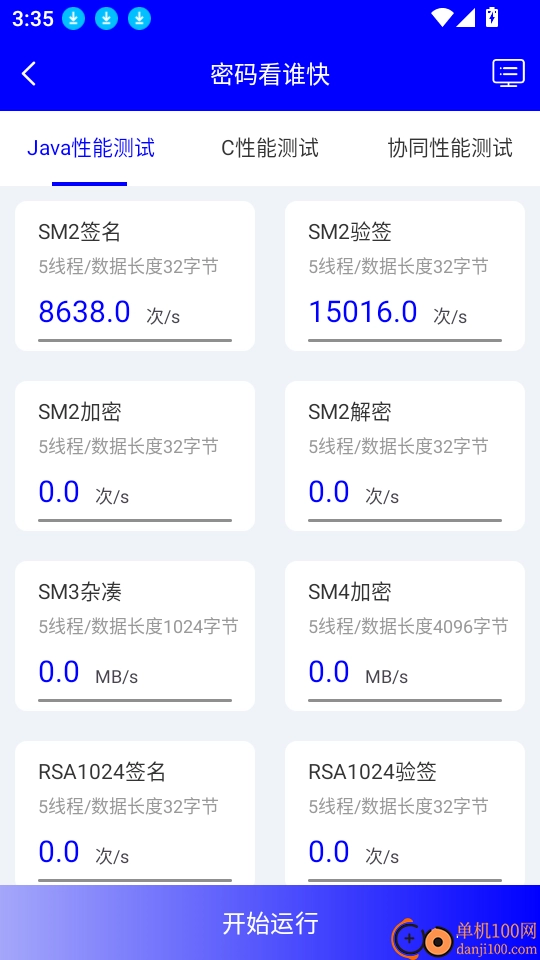 5、如此一来,即可点击“开始运行”按钮对相关密钥性能进行实时测试,实现一键测试。