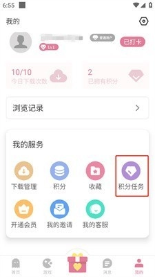2、接下来点击下图里的积分任务,按照任务要求完成后就能获取积分了。