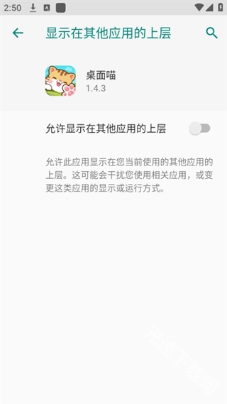 5、点击下一页就能进入设置界面,开启“允许显示在其他应用上层”的权限。