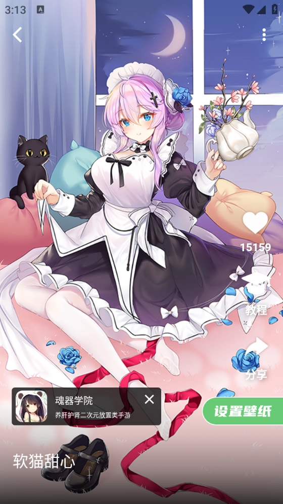4、找到心仪的壁纸并点击打开后,你既可以直接将其设置为壁纸,也能对壁纸进行收藏操作,还可以把它分享给他人。