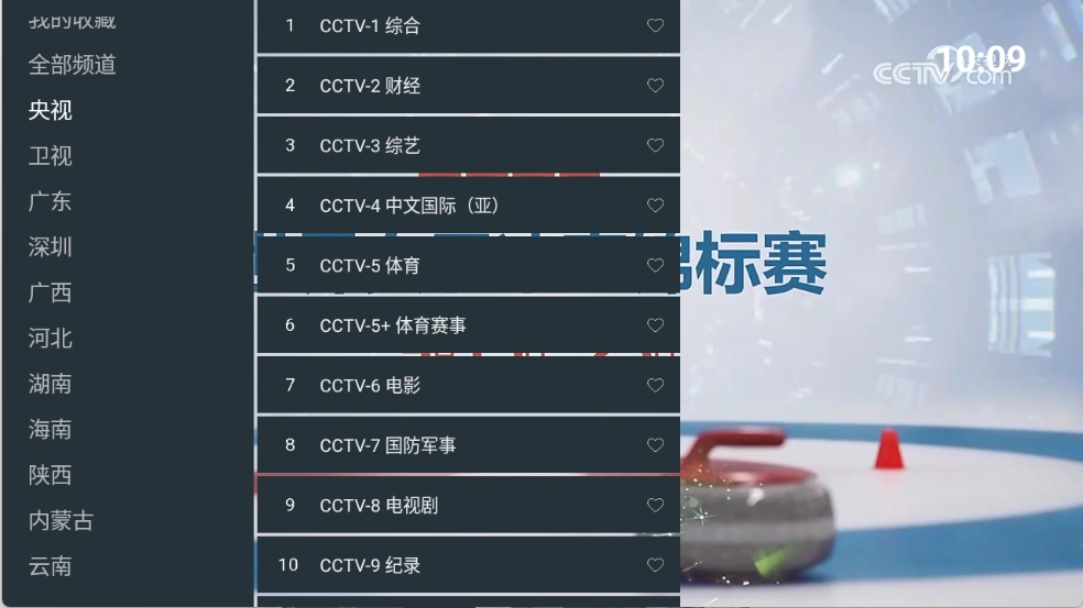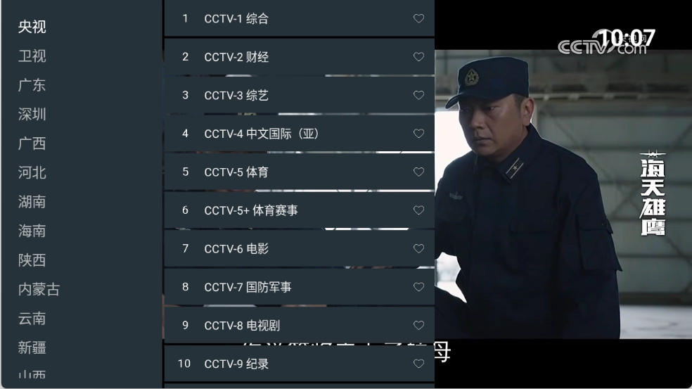 进入宝盒爱看后,点击屏幕任意位置,左侧栏就会显示出众多电视频道。