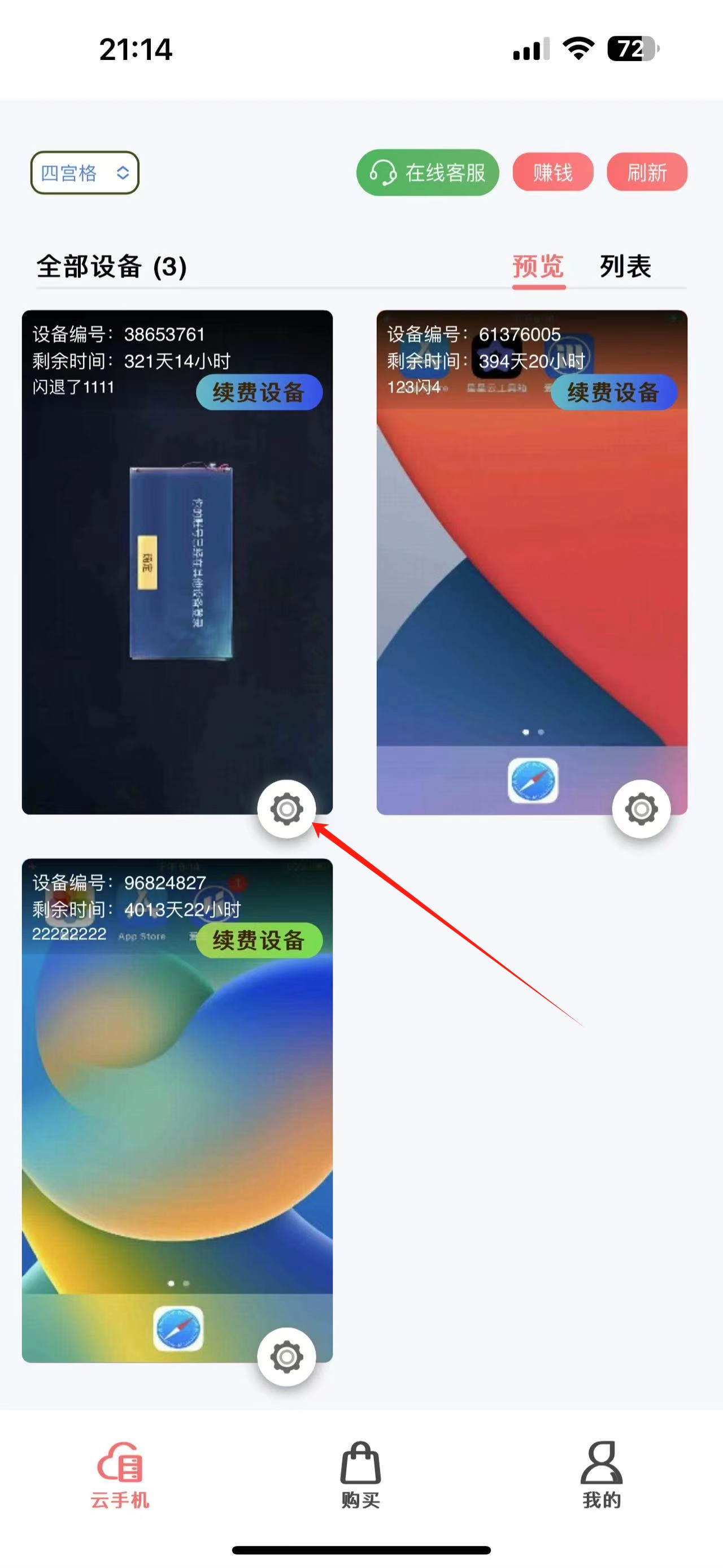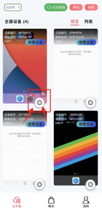1、登录后点击云机下方的齿轮按钮。