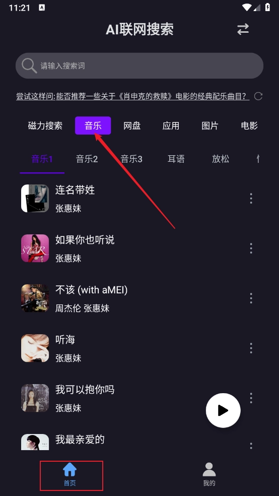 3、也能够点击顶部的搜索框,一键查找想要的歌手的歌曲。
