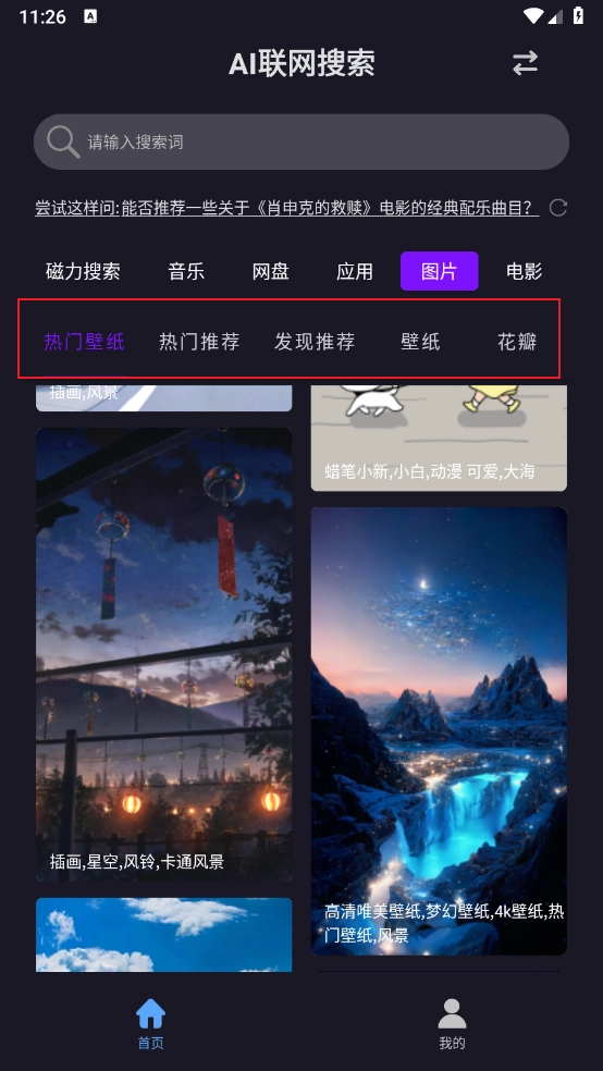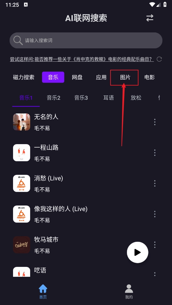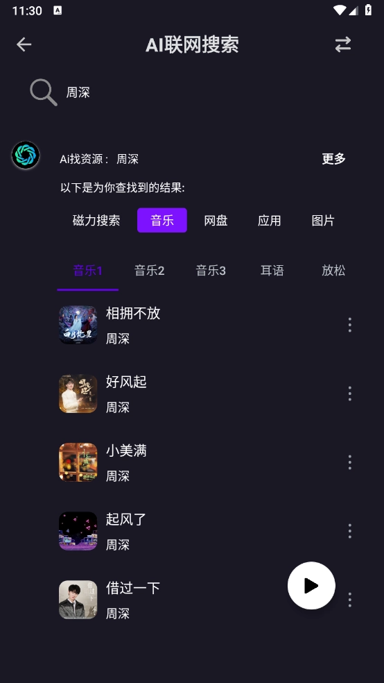 1、整合了音乐、电影、图片等多种类型资源的搜索功能,实现了一站式搜索体验。