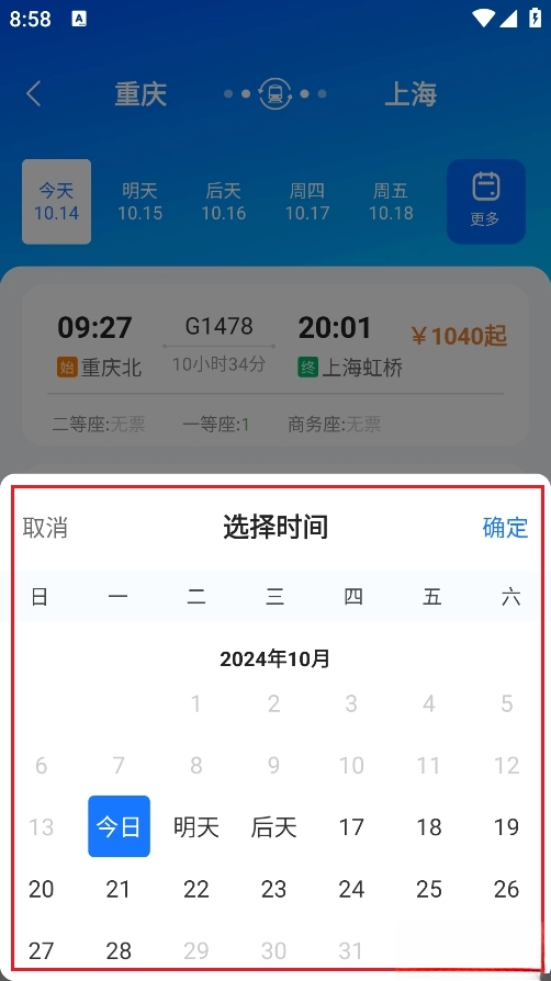 4、当车票信息显示出来后,你可以点击【更多】按钮,然后依据自身的出行安排来挑选并查看特定某一天的车票信息。