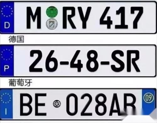 欧盟各国的车牌已实现统一,因此德国、意大利、英国等国家的车牌样式一致,上面主要标注着地名、车种、用途以及车号,排列清晰明了,堪称车牌设计中的经典范例。