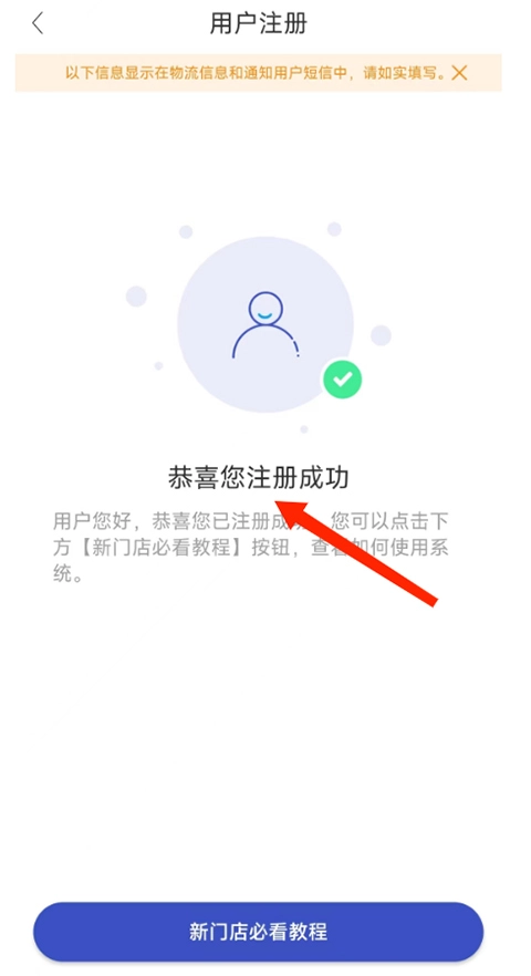 4、如图所示,当提示显示【恭喜您注册】成功时,就意味着开店账号已经完成注册了。