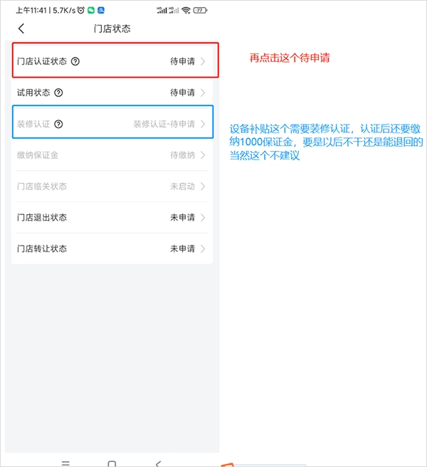 6、进入【门店状态】界面,选择【待申请】选项,