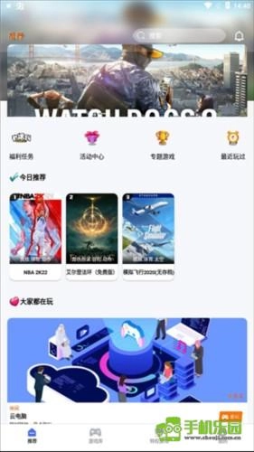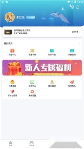 1、在本站安装并启动易点玩云游戏后,进入软件首页,用户能看到福利任务、活动中心、专题游戏等快捷入口。
