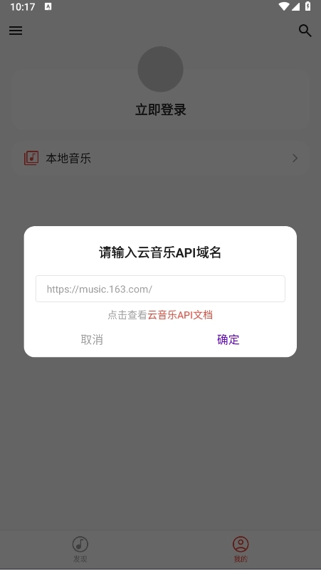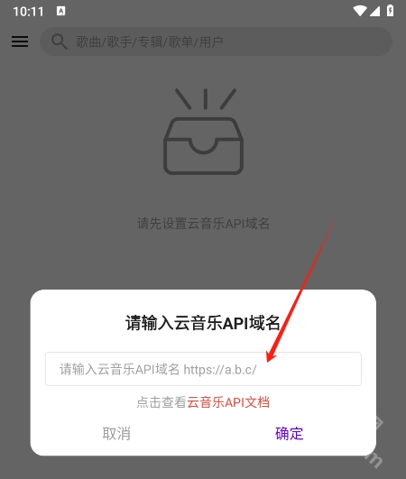 2、在弹出的对话框中输入云音乐API域名,例如这里为大家演示时填入的是网易云音乐的域名