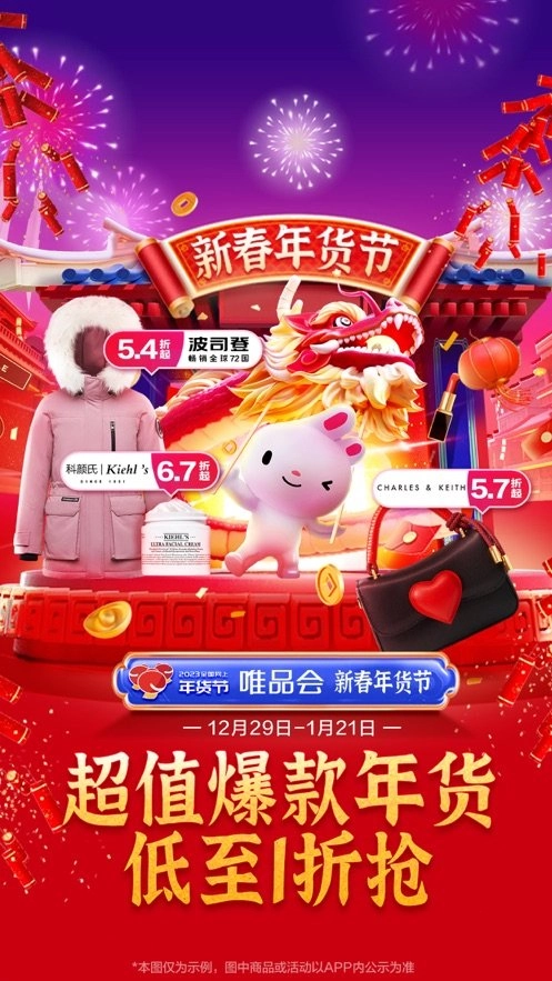 1、唯品会 新春年货节,宝藏年货低至1折;