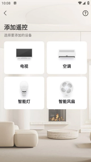 在添加设备的界面,能够选择电视、空调、智能灯以及智能风扇这些设备。