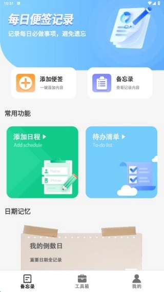 1、在备忘录页面完成安装后进行查看,这里整合了便签、日程管理、待办清单等日常高频使用的功能。