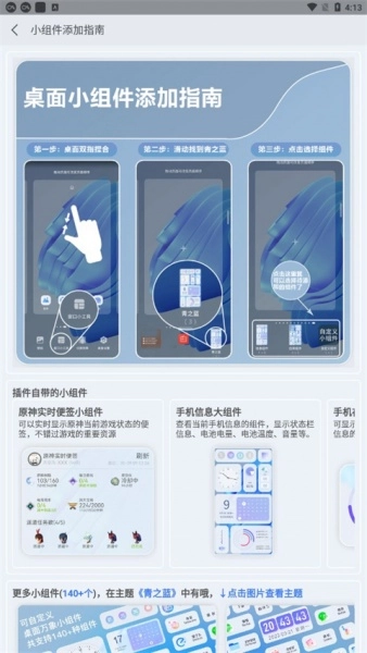 2、桌面小组件,在桌面添加各类实用的小组件;