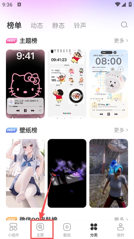 2、进入到页面后能够看到各种风格主题壁纸