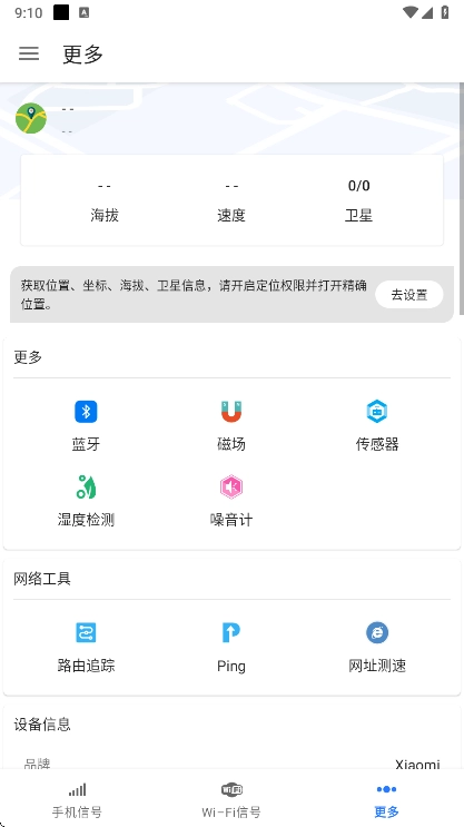 全能信号助手:一键检测手机、WiFi、蓝牙、GPS、磁场等多维度信号,帮您迅速找到最佳信号源,提升连接体验。实时了解信号强度与设备状态。速度、海拔、传感器数据全在掌控之中。