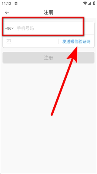 3、进入注册页面后,输入手机号码,接着点击发送短信验证码的按钮。