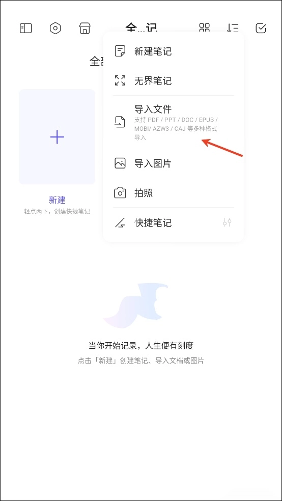 可以借助文件完成内容导入,也能利用图片和格式文档来创建笔记内容。