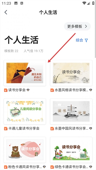 2、在模板页面,选择模版类型(以个人生活为例)。