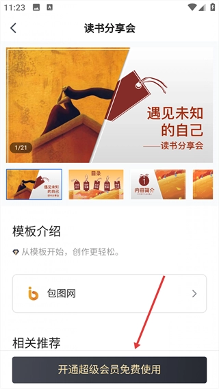 4、进入模板详情页面,开通超级会员服务,即可解锁该模板的使用权限。