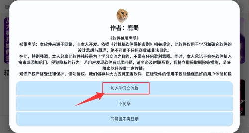 1、首次启动应用,请在使用声明弹窗选择选项进入。