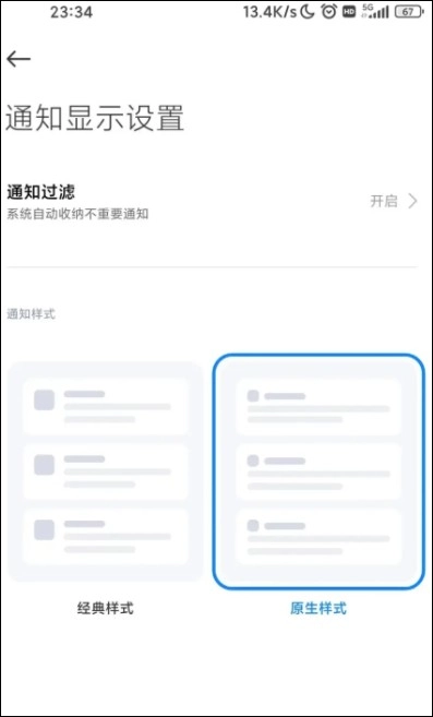 7、我们按照这个方式处理就行,后面我会以自己使用的小米MIUI系统为例来讲解,需要把手机的通知样式调整为原生样式。