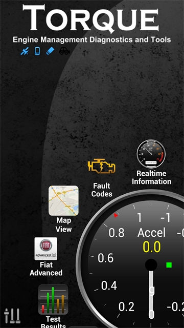 1、打开在本站下载的Torque安卓版应用,进入首页后,能看到车辆故障检测、实时数据监测、地图视图、图标展示等丰富功能。