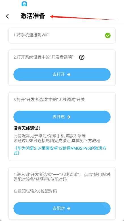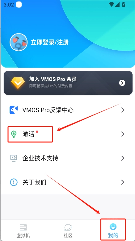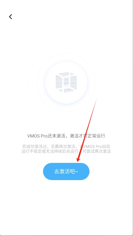3、进入下一个界面后,点击“去激活吧”按钮。由于VMOS Pro目前尚未激活,只有完成激活操作,它才能正常运行。