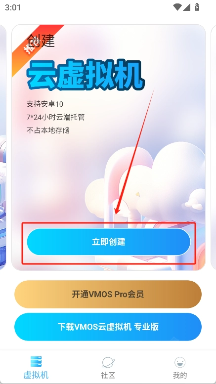5、激活完成进入首页后,点击“立即创建”按钮就能创建新的虚拟机了。