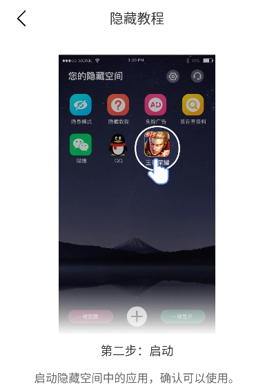 5、完成应用隐藏操作后,被隐藏的应用仅能在隐藏空间内进行访问。