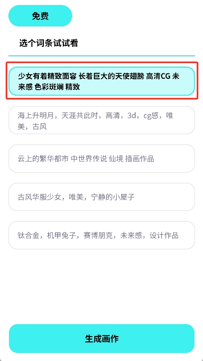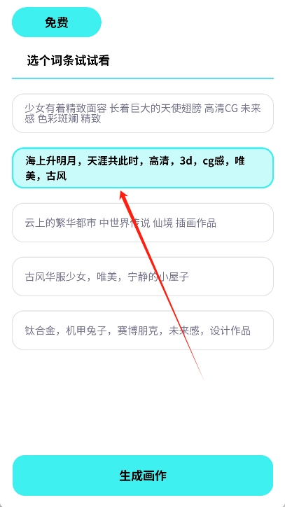 2. 关键词输入创意转化:利用AI技术,能把普通的关键词快速转化为富有创意的艺术画作。