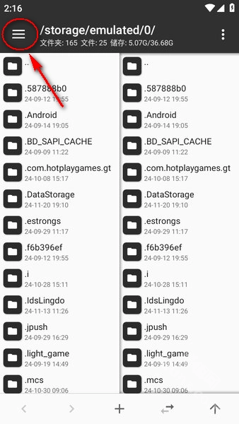1、打开MT管理器,点击左上角三条杠