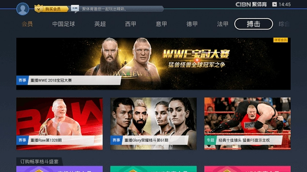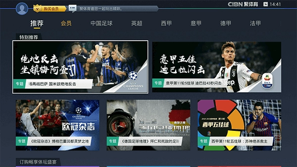 CIBN聚体育是一款聚焦体育赛事的互联网电视应用,覆盖欧冠、欧国联、意甲、法甲、英超等欧洲足球联赛与杯赛,同时包含中超、足协杯、南美解放者杯等赛事资源。此外,它还囊括CBA、WCBA等职业篮球联赛,澳网、法网、美网等网球大满贯赛事,以及拳击、体操等其他体育项目,拥有十分丰富的内容资源。