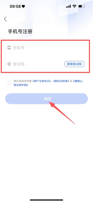 3、进入注册页面后,依次填写手机号与验证码,随后点击确定按钮,即可完成账号注册流程。