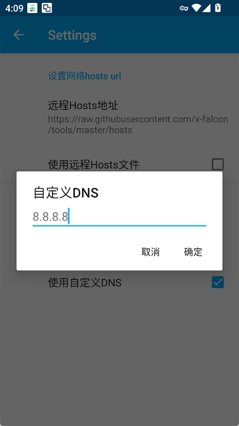 支持自定义DNS服务器的设置,系统默认采用8.8.8.8