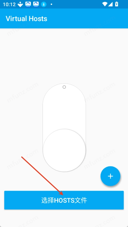 1. 在Virtual Hosts应用里,点击蓝色按钮来导入hosts文件(这类文件一般是.txt格式的)