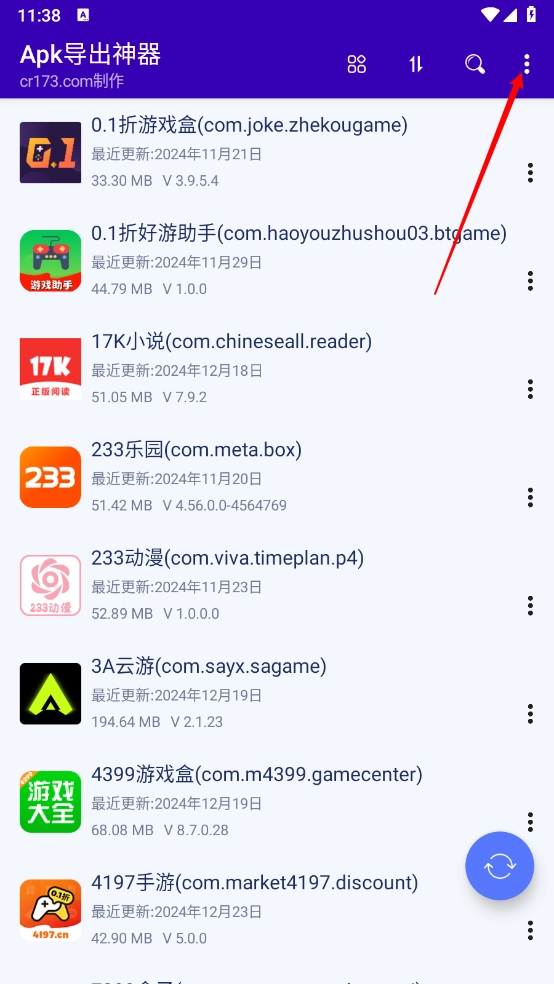 1、打开软件,点击右上角的三个点,如图。