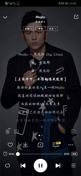2、把百万首歌曲装进你的口袋,无论何时何地都能收听,还能自动呈现精准歌词与高清专辑图片。