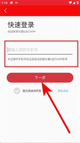3、填写手机号码,勾选同意相关协议后,点击下一步。