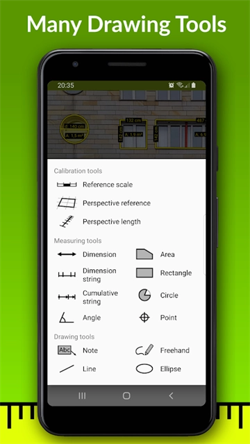 imagemeter手机软件是一款实用的手机工具,具备图像测量功能,能借助手机对各类图形开展测量标注。用户只需拍摄绘制的图纸或现实中的物体并上传标注尺寸,软件就能自动测量上传的图像,复杂图形的测量也十分简便,还可对电子标注的尺寸进行保存。