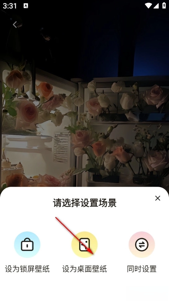 4、最后选择中间的设置桌面壁纸即可