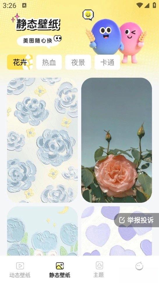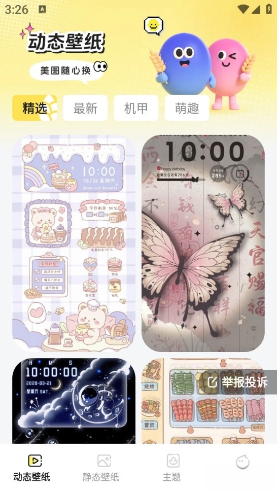 麦麦壁纸汇集了卡通、风景、萌宠、可爱、游戏、动漫等多种风格的高清壁纸,将静态、动态壁纸一网打尽,能够满足多元化的审美需求,查找喜爱的精美壁纸更便利;具备了超多精美的主题壁纸,应有尽有,帮助用户轻松找到喜欢的壁纸资源,以便用户任意挑选喜欢的主题壁纸对桌面图标、壁纸进行全套更换,打造个性化手机桌面。