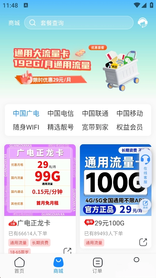 《网上营业厅》是河南知所以网络科技有限公司推出的一款融合了移动、电信、联通、广电于一体的手机网上营业厅软件,朋友们可以在软件中去挑选各种靓号,可以办理流量套餐,办理宽带等,可以一键查看自己的订单,遇到问题,还有着专属客服为你服务。