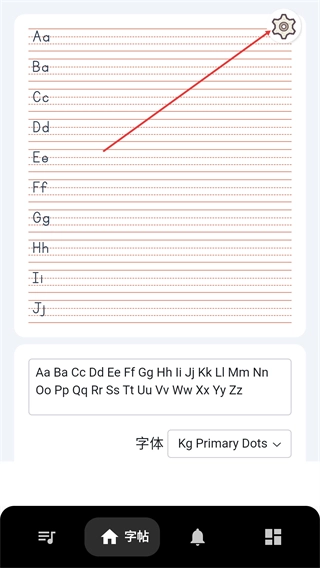 2、在字帖详情页点击设置图标,可进入设置相关的功能页面。