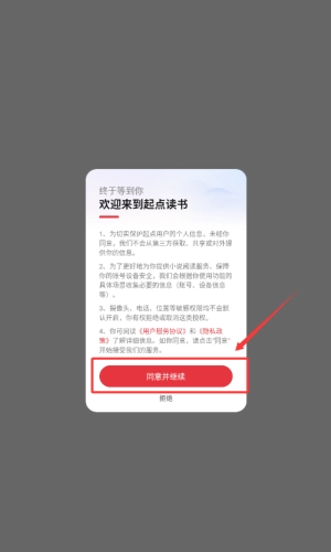 1、点击同意并继续按钮,确认隐私协议。