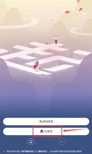 2、在登录页,点击被框选的QQ登录按钮。