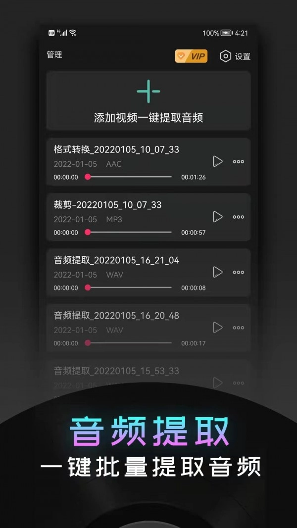 1.本地视频提取音频:支持选择单个或多个本地视频文件,一键完成音频提取操作。